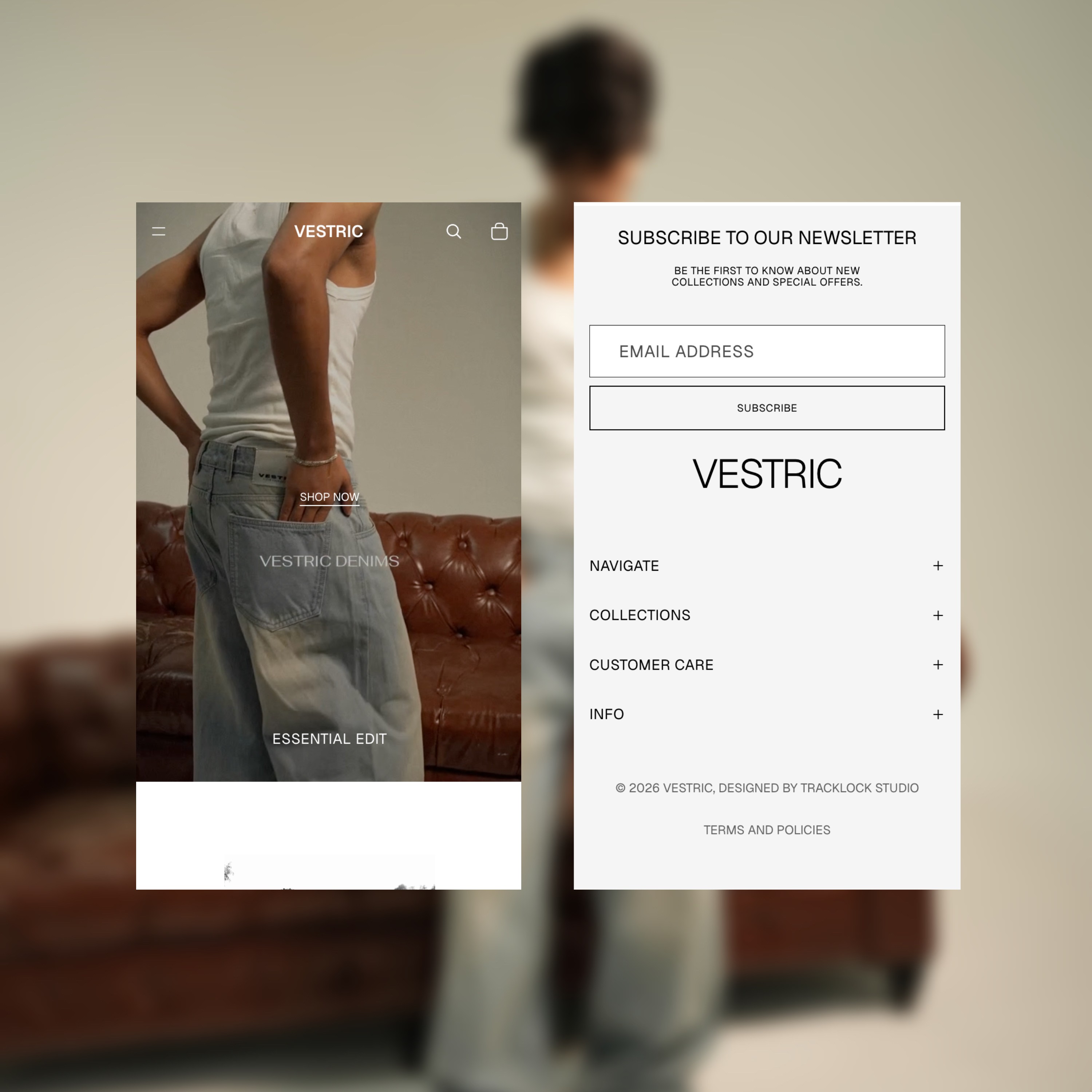 We stripped away everything unnecessary. No color distractions. No clutter. Just high-contrast imagery, clean typography, and a layout that lets the products speak. The approach was simple: build a digital space that feels as confident and intentional as the people who wear Vestric. Every design decision started with one question - does this belong?